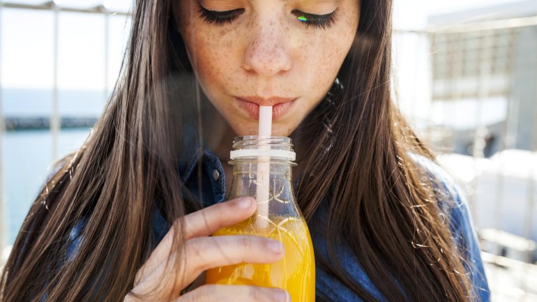 "Multivitaminsaft" klingt erst einmal gesund. Allerdings enthalten Fruchtsaftgetränke oft eine Menge Zucker – im Schnitt 11 Gramm (g) pro 100 Milliliter (ml). Der Spitzenreiter ist Traubensaft, der mit 16 mg sogar mehr Zucker enthält als Softdrinks. Nicht zuletzt finden sich Aroma- und Konservierungsstoffe in Säften, um die Haltbarkeit zu verlängern und Geschmack und Farbe zu intensivieren. Gesünder sind Fruchtsaftschorlen oder – noch besser – ungesüßte Tees. Lesetipp: Diese 6 Getränke schaden der Gesundheit |