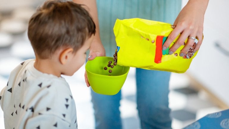 Ob Bärchenwurst, Obstbrei zum Trinken aus der Plastiktüte (sogenannte Quetschies) oder bunte Joghurts und Frühstückscerealien: Derlei Lebensmittel kommen häufig mit Stickern, Sammelfiguren und knalligen Farben daher, um Kinder zum Konsum zu animieren. Doch auch Eltern lassen sich oft täuschen: Aufschriften wie "mit viel Calcium" oder "mit echten Vitaminen" täuschen über den meist sehr hohen Zuckergehalt und zahlreiche Zusatzstoffe hinweg. Die Verbraucherzentrale empfiehlt keines der speziellen Kinderlebensmittel.