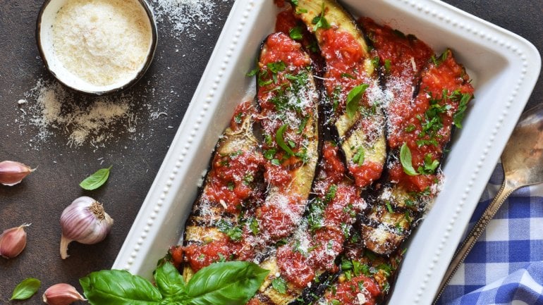 Die Basis der mediterranen Ernährung bildet Gemüse, das täglich auf dem Speiseplan steht. Dadurch ist die Mittelmeerküche reich an Vitaminen, Mineralstoffen und auch Antioxidantien. Vor allem Tomaten, Paprika, Zucchini und Auberginen sind beliebt. Lycopin in Tomaten schützt zum Beispiel vor Arteriosklerose.