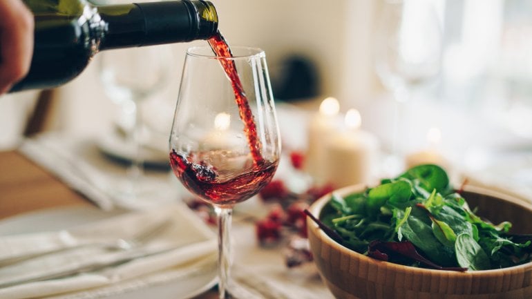Rotwein gehört am Mittelmeer zum Essen dazu. In Maßen genossen wirkt er sich positiv auf den Körper aus, sofern nicht bereits Grunderkrankungen wie zum Beispiel Diabetes mellitus oder Übergewicht bestehen. Denn Rotwein enthält sogenannte Phenolsäuren und Flavonoide, die die Körperzellen vor dem Angriff durch freie Radikale schützen.