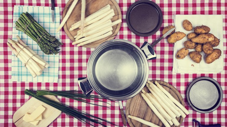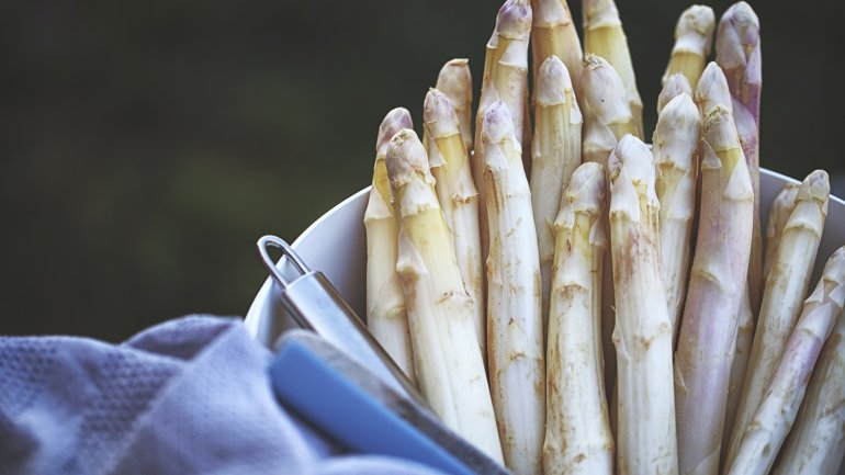 Frische Spargelstangen quietschen, wenn man sie aneinanderreibt.