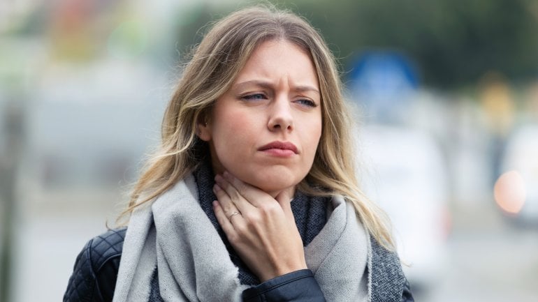 Auch Zungenbrennen kann ein Symptom bei Eisenmangel sein. Denn fehlt es an Eisen, wird die Mundschleimhaut schlechter durchblutet, was wiederum Entzündungen fördert. Das äußert sich mitunter durch eine brennende, gerötete Zunge.