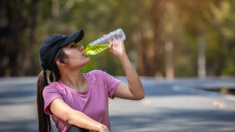 Wer viel Flüssigkeit verliert, etwa durch Schweißverlust beim Sport, sollte bestenfalls elektrolythaltige Getränke zu sich nehmen. Das gilt auch für Personen, die länger starken Durchfall haben oder sich erbrechen müssen.