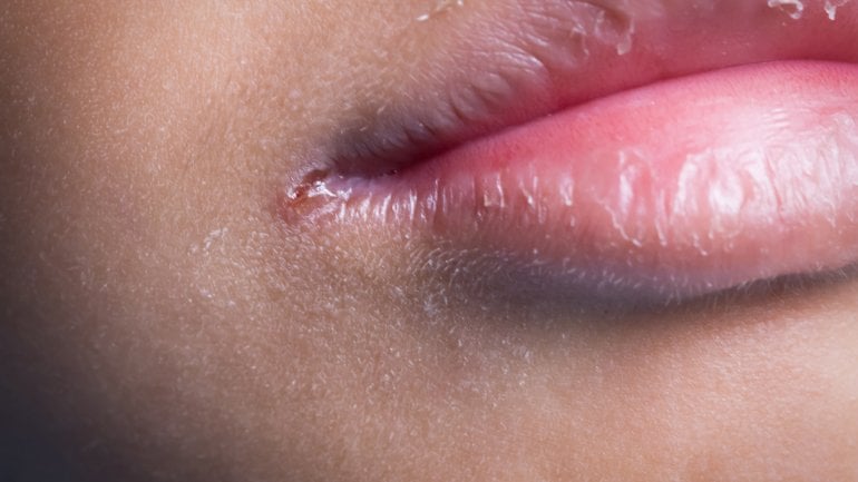Eingerissene Mundwinkel sind ein Symptom für Folatmangel