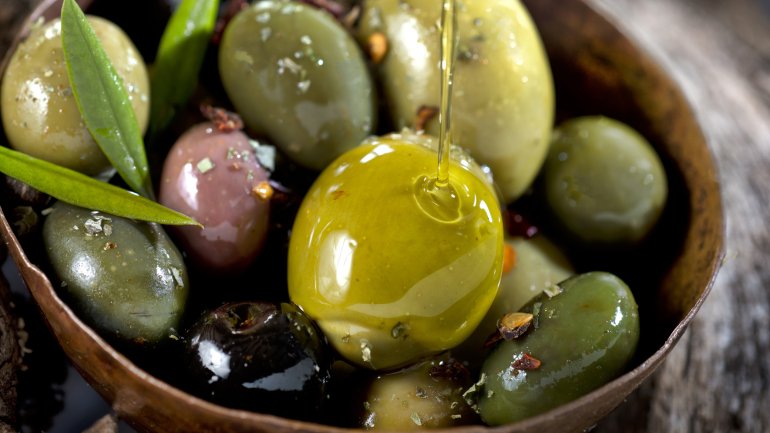 Olivenöl enthält besonders viel Ölsäure. Das ist eine Omega-9-Fettsäure, die zu den einfach ungesättigten Fettsäuren zählt, sich positiv auf das Herz-Kreislauf-System auswirkt und den Cholesterinspiegel reguliert. Was für Olivenöl gilt, betrifft auch Oliven: Grüne Oliven enthalten mehr Wasser und sind mit rund 145 Kilokalorien pro 100 Gramm kalorien- und fettärmer als schwarze Oliven mit rund 190 Kilokalorien.