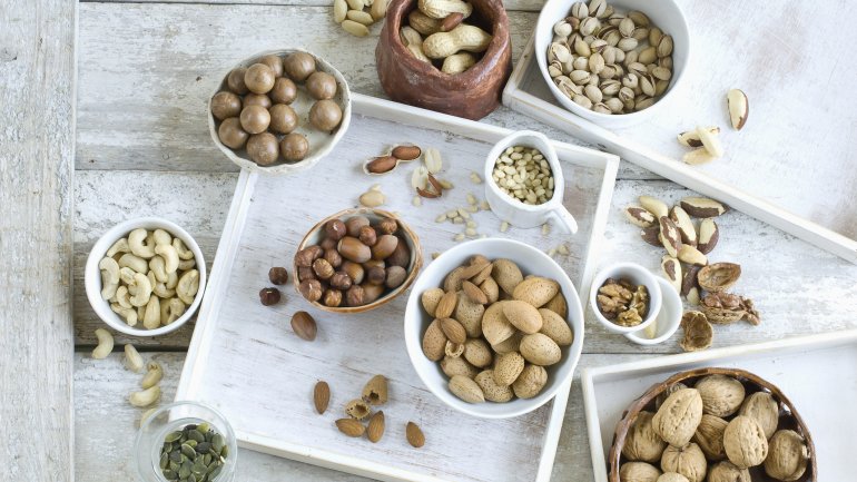 Ob Walnüsse, Haselnüsse, Pekannüsse, Mandeln, Pistazien oder Cashewkerne: Der Verzehr von Nüssen, Samen und Kernen kann sich positiv auf die Blutfettwerte und die Herzgesundheit auswirken. Die energiereichen Nährstofflieferanten enthalten neben Omega-3-Fettsäuren auch Ballaststoffe, B-Vitamine sowie Magnesium, Kalium, Natrium und Phosphor.