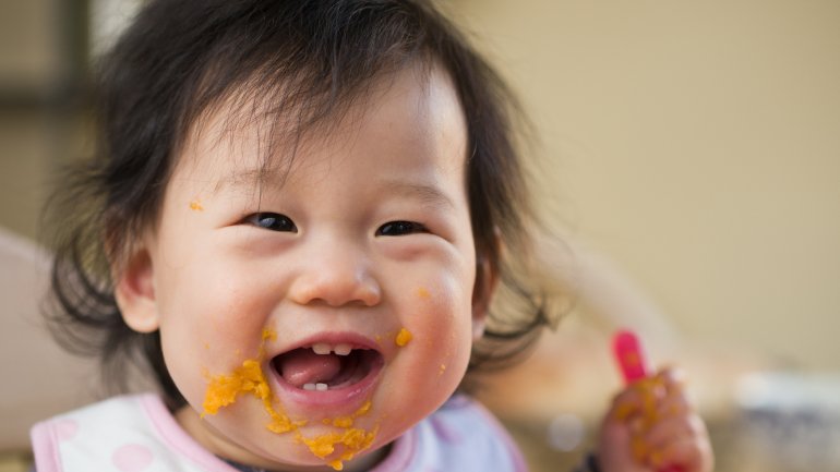 Bei vielen Kindern fällt das Interesse an Beikost damit zusammen, dass die ersten Zähne durchbrechen. Sie sabbern nun besonders viel und nehmen vermehrt Dinge in den Mund, um daran zu lutschen und darauf herumzukauen.
