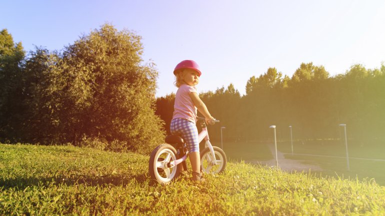Tipp: Da schon Dreijährige auf dem Laufrad enorme Geschwindigkeiten erreichen können, sollten Sie nicht ohne Schutzhelm losrollen. Außerdem empfiehlt es sich, erste Schritte in der Verkehrserziehung zu unternehmen: Was bedeuten die verschiedenen Farben der Ampel? Wo darf das Kind fahren, wo nicht? Am besten lassen Sie Ihr Kind noch eine Weile ausschließlich im Hof oder im Park seine Runden drehen.
