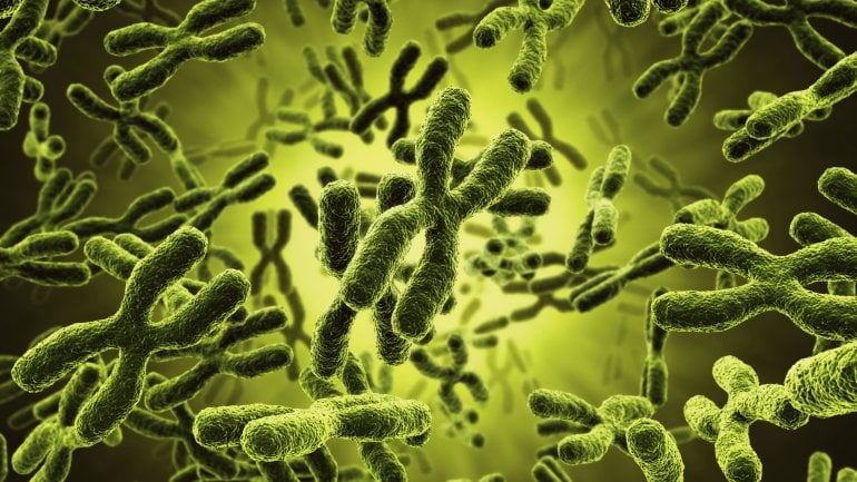 Jede Zelle besitzt 23 Chromosomen in doppelter Ausführung, insgesamt also 46. Eine Ausnahme sind die mütterliche Eizelle und die väterliche Samenzelle – sie besitzen nur einen einfachen Chromosomensatz, das heißt 23 Chromosomen. Bei der Zeugung eines Kindes kommen Ei- und Samenzelle zusammen. Die Zellen des Kindes enthalten dadurch wieder 46 Chromosomen.