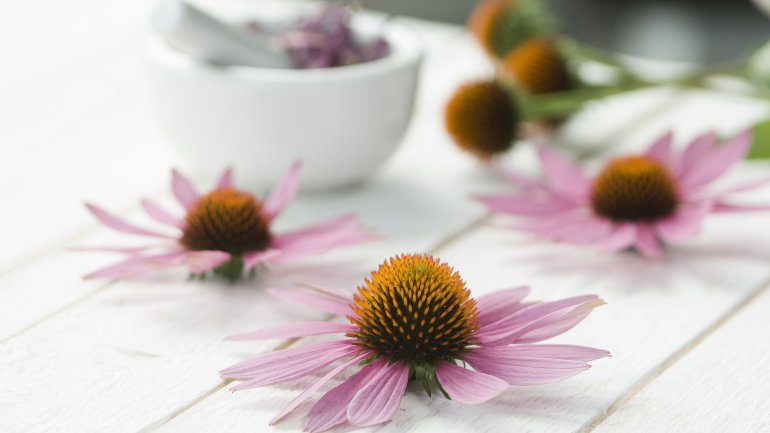 Erkältungen machen auch vor Schwangeren nicht halt. Leider ist die Liste der Mittel, die sie gegen die lästigen Symptome nehmen dürfen, nicht lang. Echinacea (Sonnenhut) ist in vielen natürlichen Mitteln zur Vorbeugung und Behandlung von Erkältungen enthalten. Auch hier heißt "natürlich" jedoch nicht in jedem Fall gut. In einer kanadischen Studie kam es zu doppelt so vielen Fällen von Spontanaborten bei Schwangeren, die Echinaceaprodukte einnahmen wie in der Kontrollgruppe. In Tierversuche zeigte sich, dass Echinacea offenbar das fetale Wachstum hemmt. Beim Menschen konnte das bislang nicht beobachtet werden. Dennoch sollten Schwangere möglichst auf Produkte mit Echinacea verzichten.