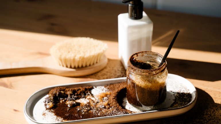 Deshalb ist es sinnvoll, auf mikroplastikfreie Produkte umzusteigen. Alternativ können Sie Ihre Kosmetikprodukte aber auch einfach selbst herstellen. Für unser Kaffee-Peeling benötigen Sie nur vier Zutaten, die Sie garantiert zu Hause haben: