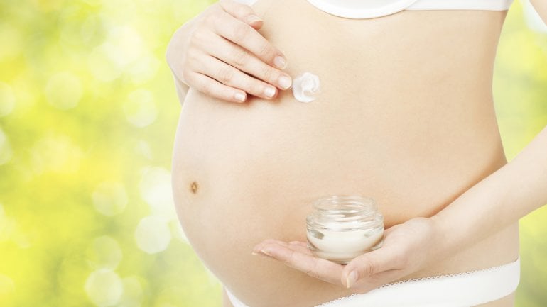 Wenn der Bauch während der Schwangerschaft wächst, dehnen sich die Haut und das darunterliegende Bindegewebe entsprechend aus. Vor allem in den letzten Schwangerschaftsmonaten kann es zu einer Überdehnung am Bauch, aber auch im Bereich der Brüste und Hüften kommen.