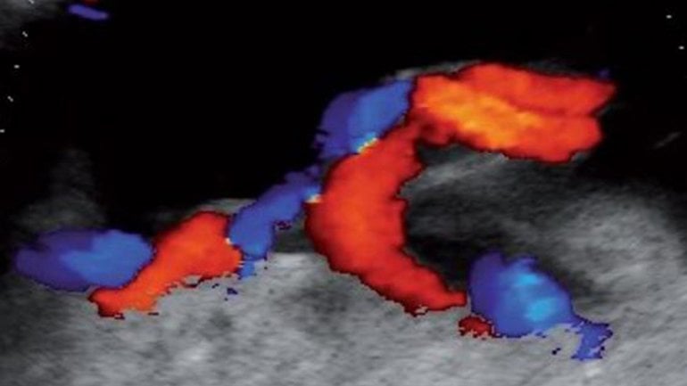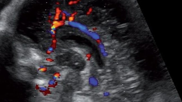 Mit dem Dopplerultraschall kann auch der Blutfluss in den Blutgefäßen im Gehirn farbig dargestellt werden. Der*die Arzt*Ärztin überprüft so Reifung und Durchblutung des Gehirns und kann darüber bestimmte Krankheiten erkennen oder ausschließen.