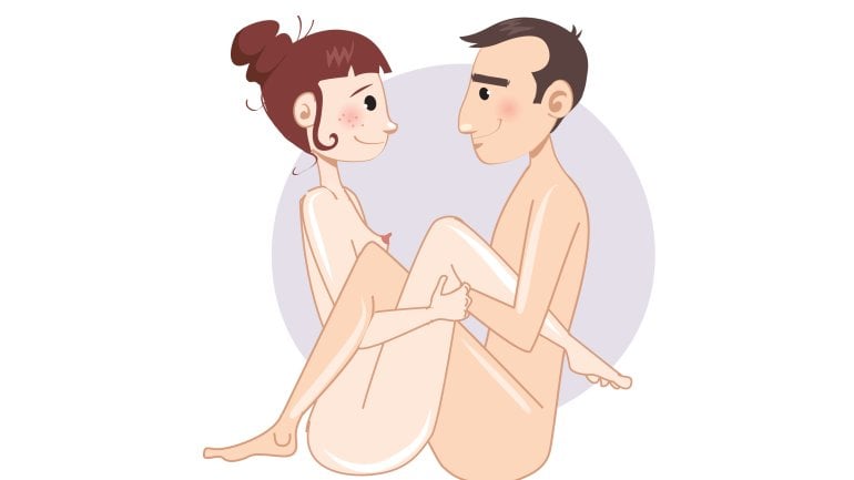 Der Mann sitzt für die hitzige Sitzung auf einem Stuhl, die Frau setzt sich auf seinen Schoß. Bei dieser Stellung gibt die Frau den Takt an, denn sie kann ihn herein- und herausgleiten lassen, wie es ihr gefällt. Gleichzeitig kann der Mann ihre und seine Lust noch steigern, indem er ihre Klitoris reizt.