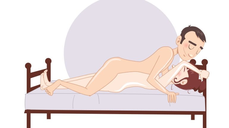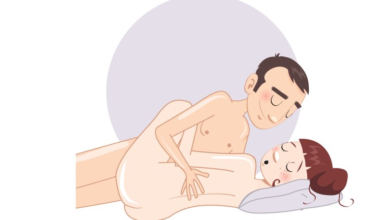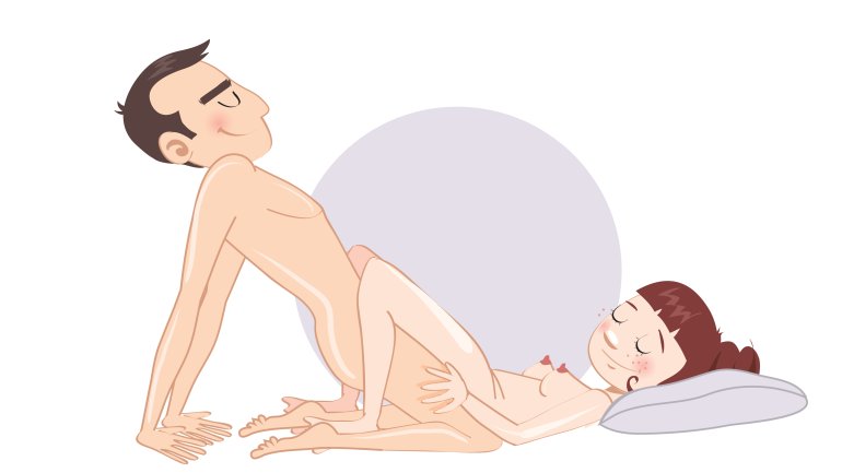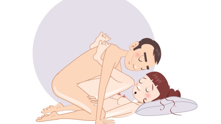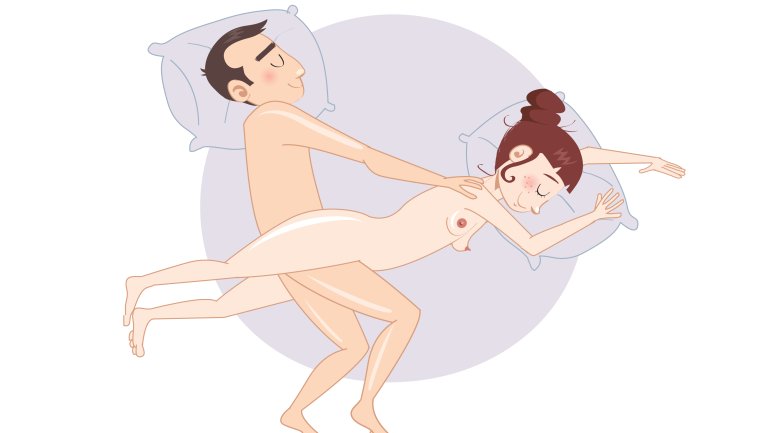 Bei dieser Stellung legt sie sich zuerst ganz bequem auf die Seite. Nun hebt sie ihr oberes Bein, damit der Mann seinen Unterkörper dazwischen schieben und in sie eindringen kann. Die Frau und der Mann sollten jetzt einen rechten Winkel bilden. Damit er einen besseren Halt hat, kann er sich an ihren Schultern abstützen. Sie bekommt Halt, indem sie sich mit den Füßen stabilisiert. Jetzt kann die Reise beginnen ...