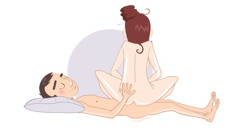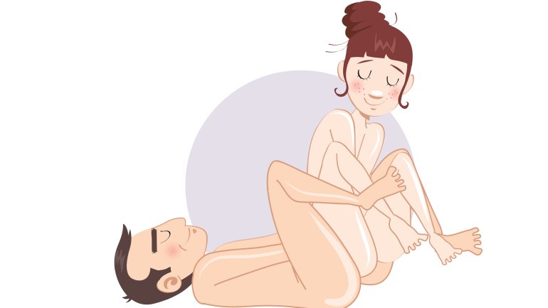 Der Mann liegt auf dem Rücken mit leicht gespreizten Beinen, sein Kopf ruht auf einem Kissen. Sie schwingt ihre Beine über Kreuz über ihn und presst sie eng zusammen. Dann setzt sie sich auf ihn und lehnt sich zurück auf ihre Arme. Wenn er in sie eindringt, öffnet sie ihre Beine leicht, sodass er sich langsam und intensiv in ihr bewegen kann.