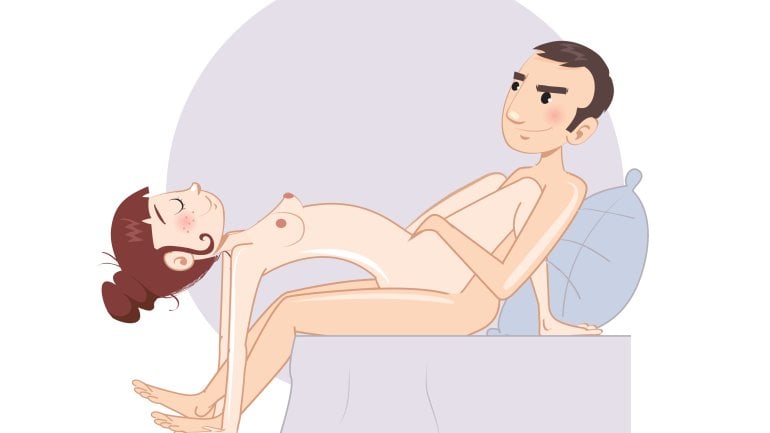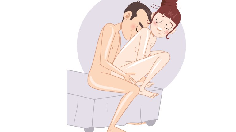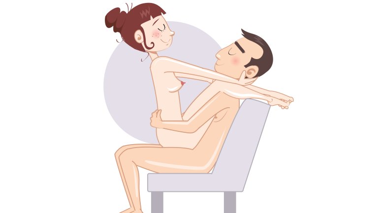 Auf den Rhythmus kommt's an: Der Mann sitzt auf einem Stuhl und platziert ein Kissen oder Ähnliches unter die Knie, sodass diese leicht erhöht sind. Seine Partnerin setzt sich rittlings auf seinen Schoß und lehnt sich gegen seine Schenkel zurück. Dann hebt sie ihre angewinkelten Beine und legt die Fesseln über seine Schultern. Er hält sie an den Hüften und dirigiert so ihre Position, während er in sie eindringt.