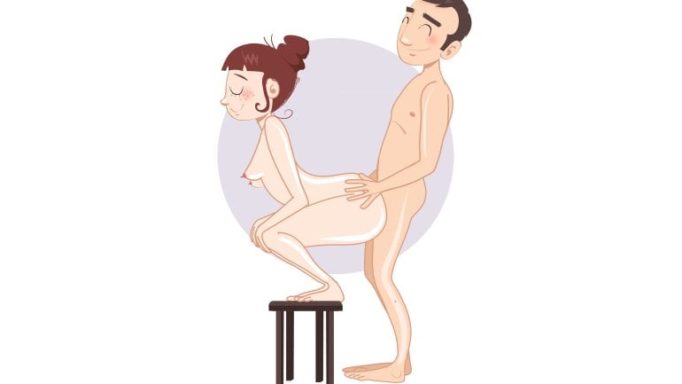 :ie Frau steht auf einem Stuhl, den Oberkörper nach vorne gebeugt und die Ellbogen auf die Knie gestützt. Sie wird vom Mann an der Hüfte gehalten. Er bestimmt dabei den Rhythmus der Vor- und Rückwärtsbewegungen. Wer die Herausforderung annimmt, hat garantiert einen optimalen Lustgewinn.