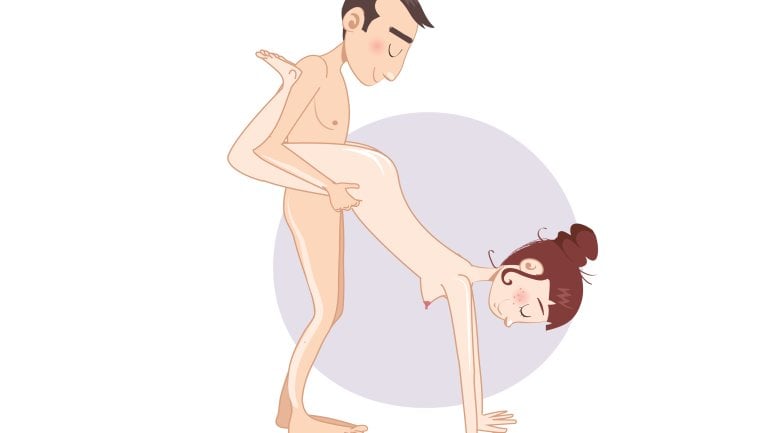 Die Frau stützt sich mit gestreckten Armen auf dem Bett ab. Er steht hinter ihr am Bettrand und hebt ihr Becken mit den Händen in die Höhe, um in sie eindringen zu können. Ihre Beine klemmt sie dabei unter seine Arme. Diese Stellung muss geübt werden. Außerdem sollten beide Partner sehr gelenkig sein.