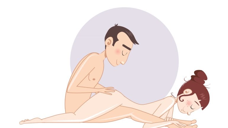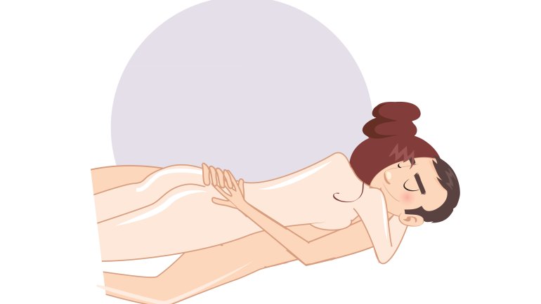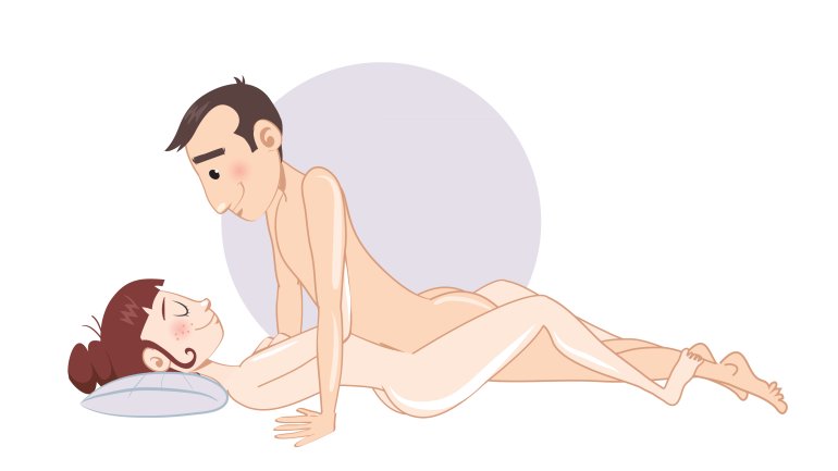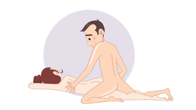 Die Frau liegt dabei entspannt in Bauchlage auf dem Bett. Die Beine sind leicht gespreizt. Der Mann setzt sich nun von hinten auf die Frau, seine Beine sind bequem neben ihrem Oberkörper aufgestellt. Mit den Armen stützt er sich nach hinten ab und bewegt sich leicht vor und zurück. Für ein noch tolleres Gefühl schließt die Frau leicht ihre Beine.