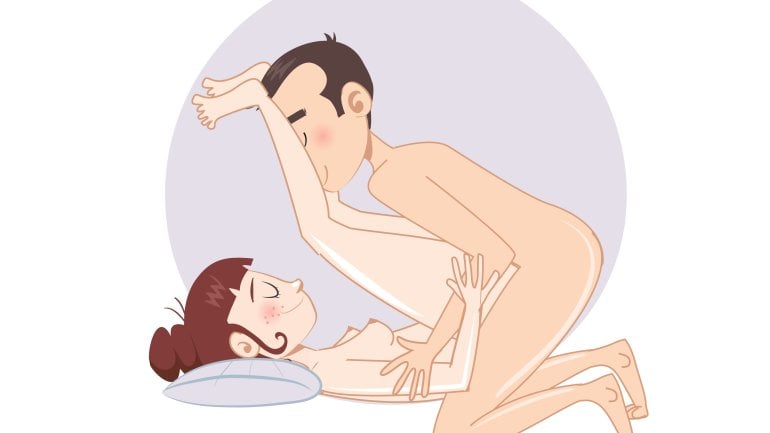 Sie legt sich für die Hausnummer auf den Rücken und schiebt ein Kissen unter den Po, während er zwischen ihren Beinen kniet. Diese Stellung ermöglicht ihm ein besonders tiefes Eindringen. Sie verschränkt die Beine und bewegt ihre Hüfte wellenartig – erst in die eine und dann in die entgegengesetzte Richtung.