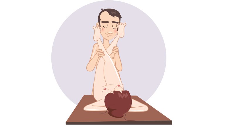 Die Frau legt sich für G-Force auf den Rücken und zieht die Knie nah an ihre Brust heran. Er kniet sich vor sie und hält ihre Füße fest, dann dringt er in sie ein. Er bestimmt das Tempo und die Tiefe des Eindringens. Noch intensiver wird das Ganze, wenn sie ihre Füße auf seiner Brust abstützt und er ihre Hüften hält. Zum Sex-Quiz ...
