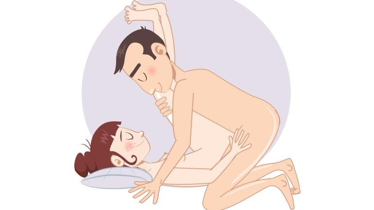 Die Frau liegt beim Klassiker mit gespreizten Beinen auf dem Rücken. Ihr Becken lagert auf Kissen, damit der Penis optimal in sie eindringen kann. Der Mann legt sich zwischen die Beine seiner Partnerin. Er stützt sich auf seinen Händen auf und bewegt sich vor und zurück. Diese Position ist stimulierend und entspannend zugleich, die Partner können sich anschauen und küssen.