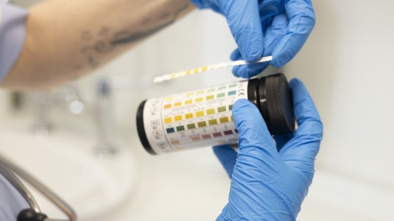 Viele Betroffene scheiden zu Beginn einer Nierenschwäche vermehrt hellen, fast wasserklaren Urin aus. Denn wenn die Nierenfunktion gestört ist, kann das Organ den Harn nicht mehr ausreichend konzentrieren. Ein weiteres Warnsignal ist schäumender Urin, der auf eine vermehrte Eiweißausscheidung (Proteinurie) hindeuten kann. Blut im Urin kann ebenfalls ein Hinweis sein. Dieses ist aber nicht unbedingt sichtbar und lässt sich oft nur mit Urinteststreifen nachweisen.
