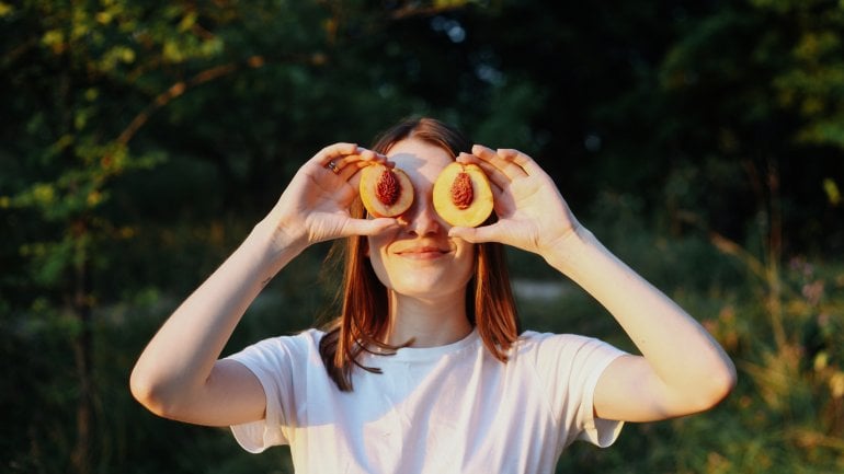 Der Pfirsich enthält mit 1,7 Gramm pro 100 Gramm Frucht recht wenig Fruchtzucker und außerdem reichlich Niacin (Vitamin B3).