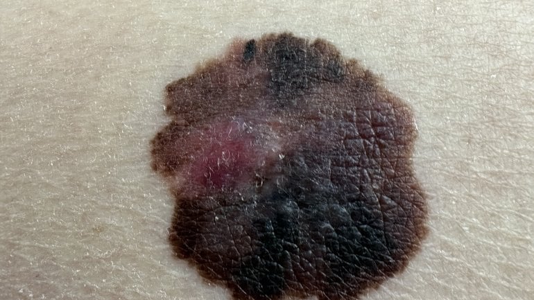 Schwarzer Hautkrebs muss nicht unbedingt schwarz sein. Melanome können auch rötlich, braun, grau und in seltenen Fällen sogar weißlich sein. Teilweise ist der Hautkrebs auch stark gefärbt oder mehrfarbig.