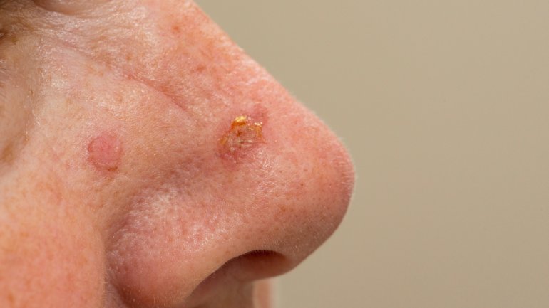 Bilder von weißem Hautkrebs: Basaliom häufig auf der Nase