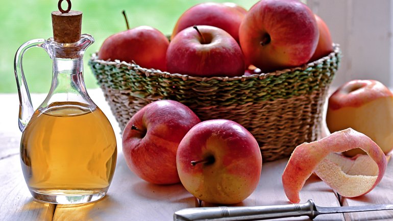 Mischen Sie Apfelessig im Verhältnis eins zu vier mit destilliertem oder abgekochtem Wasser. Tragen Sie die Mischung mit einem Watte- oder Stoffpad auf und waschen Sie Ihr Gesicht nach zehn Minuten mit klarem Wasser ab. Das Gesichtswasser wirkt antibakteriell und sorgt für einen ausgeglichenen pH-Wert im Gesicht.