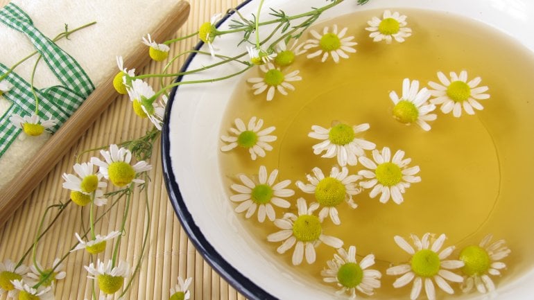 Hausmittel bei fettiger Haut: Dampfbad mit Kamille