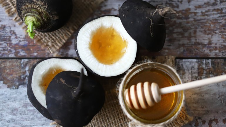 Schwarzer Rettich ist ein Hausmittel der Natur gegen Husten und gilt als pflanzliches Antibiotikum. Aufgrund der enthaltenen Senföle wirkt er besonders gut gegen hartnäckigen Husten. Für einen Hustensaft werden ein Rettich sowie Kandiszucker (alternativ jeder andere Zucker) oder Honig benötigt.