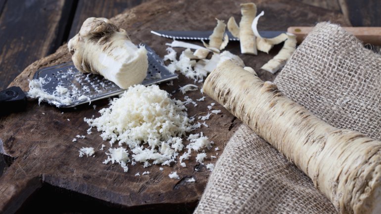 Auch aus frischem Meerrettich und etwas Honig lässt sich ein Hustensaft selber machen. Dafür ein Stück Meerrettich schälen und fein reiben, bis ein kleines Marmeladenglas halb befüllt werden kann. Den leicht erwärmten Honig darauf geben und gut mit dem Meerrettich verrühren. Ein paar Stunden ziehen lassen.