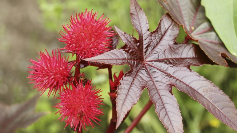 Mit seinen lang gestielten grün, rot oder blaugrau gefärbten Blättern und den rötlichen, mit Stacheln besetzten Kapselfrüchten ist der Wunderbaum als Zierpflanze sehr beliebt.