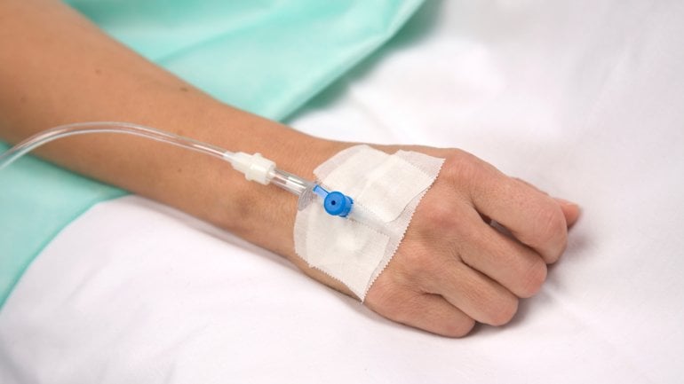 Wer schon einmal Blut gespendet hat oder im Rahmen eines Krankenhausaufenthalts Infusionen bekam, dem ist eine sehr häufig verwendete Katheter-Form bereits begegnet: der sogenannte periphere venöse Verweilkatheter. Mit einer Hohlnadel sticht der Arzt in eine Vene des Patienten – besonders die Venen in der Armbeuge oder am Unterarm bieten sich hier an. Dann schiebt er über diese Nadel einen kleinen Katheterschlauch in das Blutgefäß hinein. Anschließend zieht der Arzt die Nadel heraus – der Katheter verbleibt dabei in der Vene. Damit er danach nicht wieder aus dem Blutgefäß herausrutscht, fixiert ihn der Arzt mit einem Pflaster. Über den Venenverweil-Katheter erhält der Patient zum Beispiel Flüssigkeit oder Medikamente (z.B. Antibiotika-Infusionen).