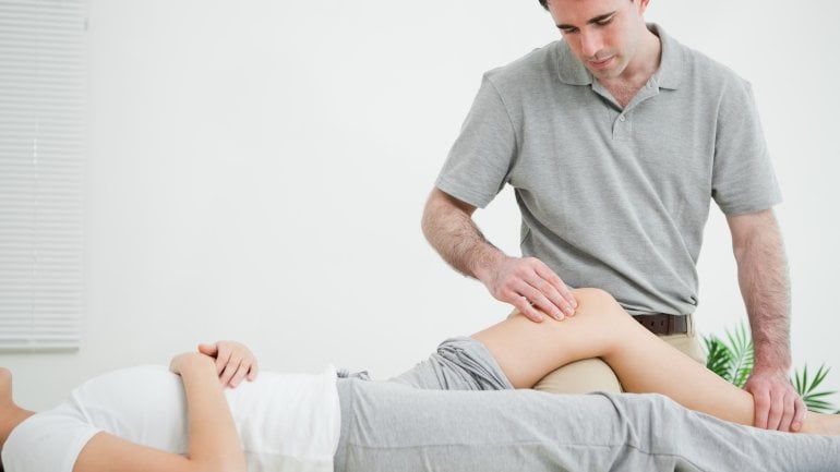 Die manuelle Therapie dient dazu, Funktionsstörungen des Bewegungsapparates zu erkennen und zu beheben. Der Physiotherapeut behandelt den Betroffenen mithilfe spezieller Handgriff- und Mobilisationstechniken. Beispielsweise bewegt er schmerzende Gelenke und Glieder ganz vorsichtig, um die Beweglichkeit zu verbessern und die Muskeln zu entspannen. Oder er entlastet eingedrückte Nerven durch leichten Zug an bestimmten Körperteilen. Darüber hinaus kann die manuelle Therapie nach Sportverletzungen wie zum Beispiel einem Kreuzbandriss helfen: Kräftigungs- und Koordinationsübungen stabilisieren das betroffene Gelenk und machen es belastbarer.