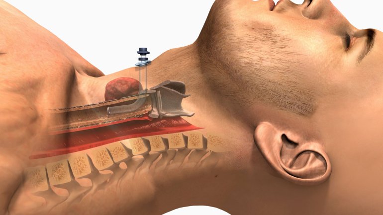 Nach einem Luftröhrenschnitt wird eine Kanüle in die Luftröhre eingeführt, über die entweder eine maschinelle Beatmung oder Atemunterstützung, aber auch selbstständige Atmung möglich ist.